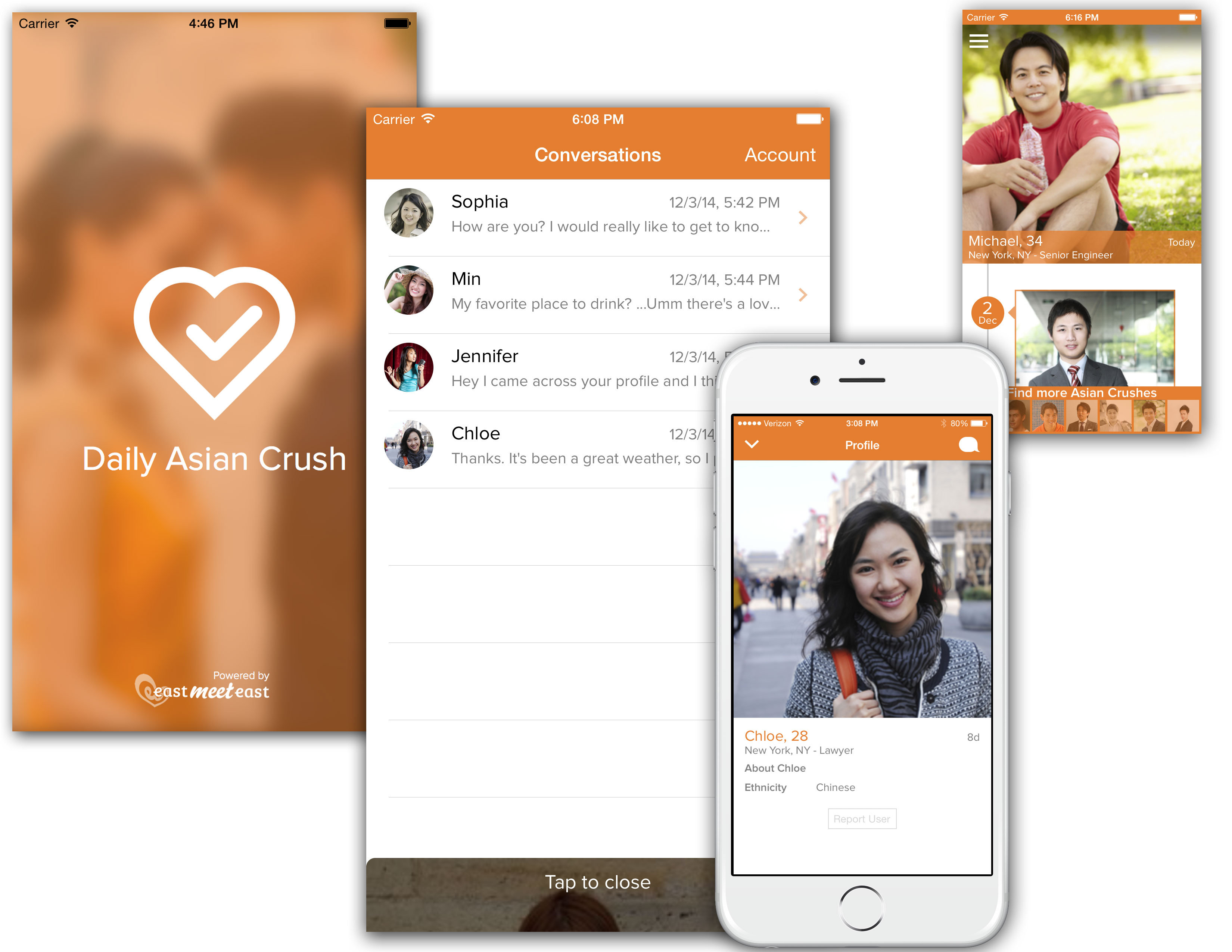 Daily Asian Crush is a sister app to EastMeetEast, the original Asian dating app and website. EastMeetEast has tripled its user base in the last 3 months as it has rapidly grown in popularity amongst young Asian urban professionals. Nearly 70% of the site’s traffic is now on mobile phones.